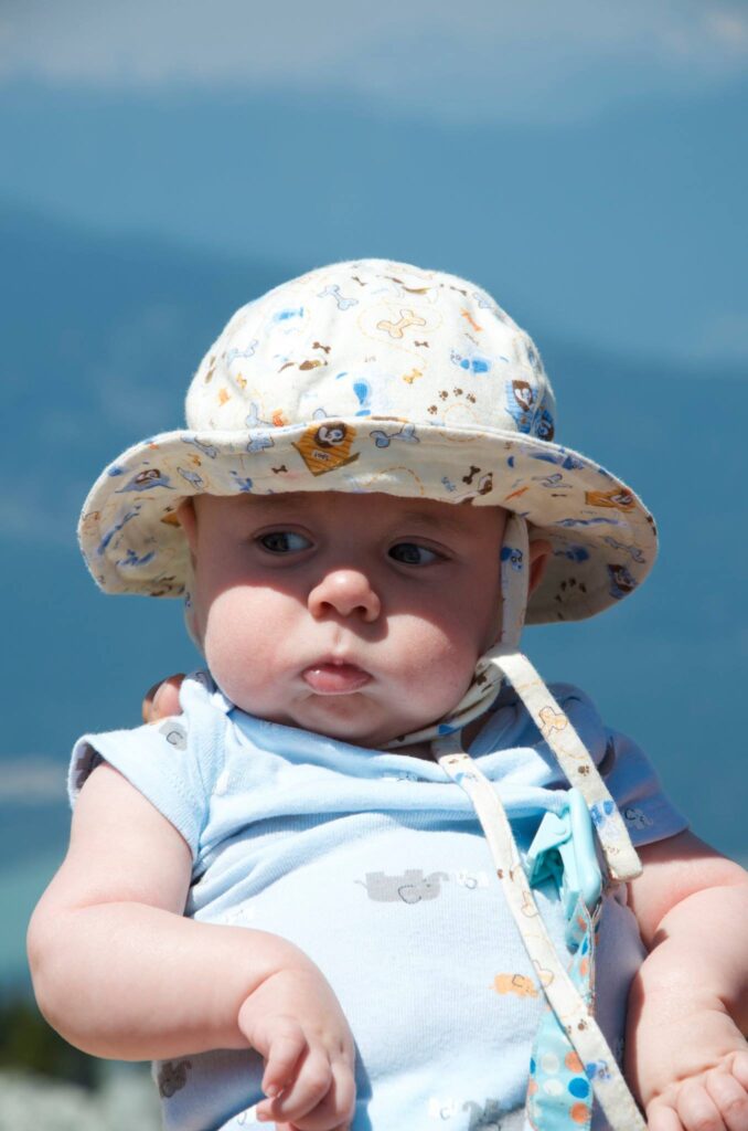 Meet Emmett, in late August he is a 5 and a 1/2 month old little boy. His eyes are piercing and they follow you wherever you go. He loves interacting with everyone. Tickle his feet and you will have made a friend for life. Hiking with his family is one of his favourite things to do. He’s been to the top of Whistler and Blackcomb, through Rogers Pass, spent time in Glacier and Banff National Parks, and even spent a week working at the Okanagan Gleaners – preparing food to be dried and sent overseas as a soup mix to feed the hungry. When I say working, he was the team morale builder! Chilliwack Lake Provincial Park in B.C. is his favourite campsite – he’s so comfortable that he can fall asleep almost anywhere!
